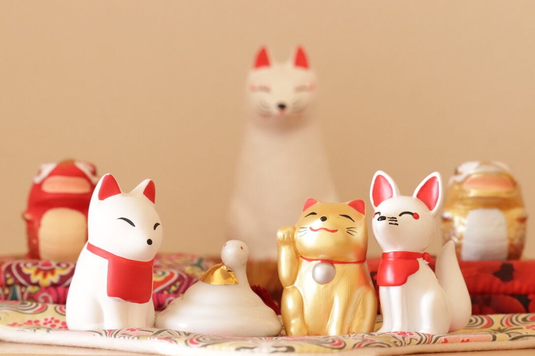 水晶やパワーストーン、招き猫や狐さん